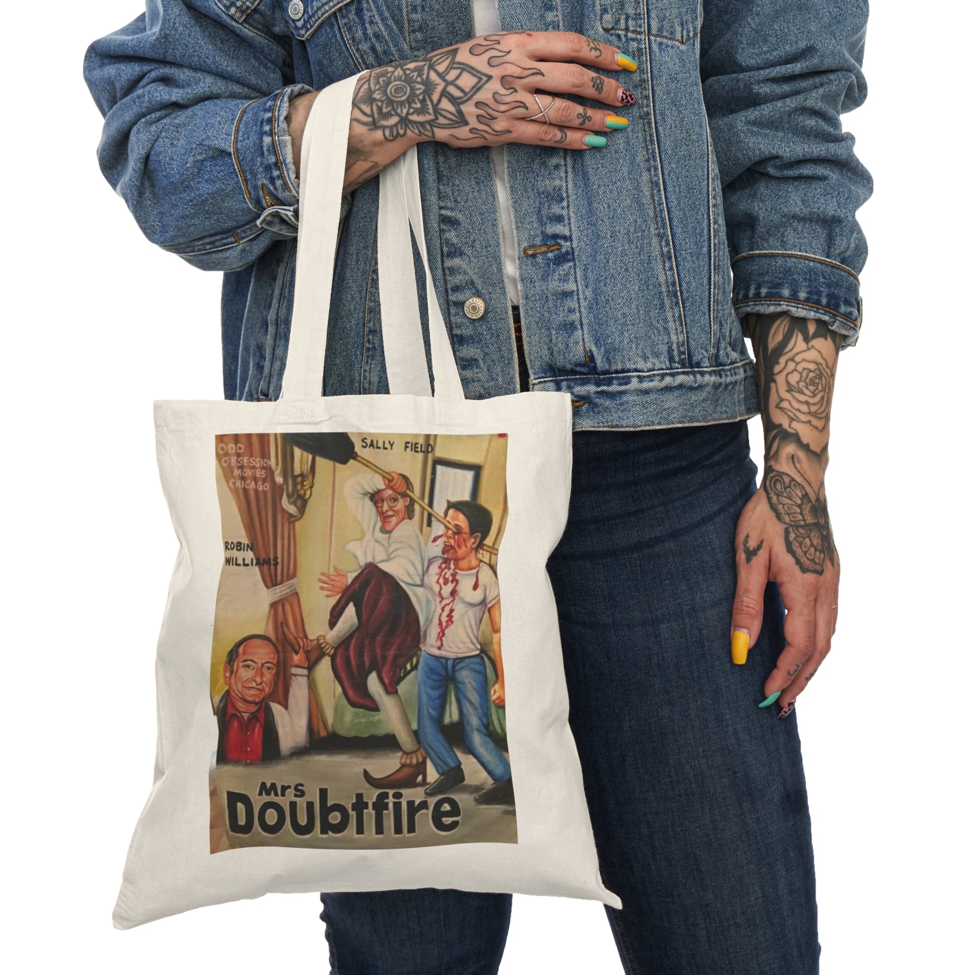 This Tote Bag features an Alternative Poster design inspired by Mrs Doubtfire, with vibrant colors.